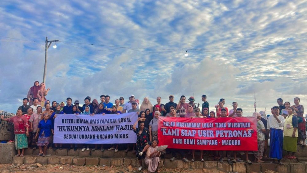 Spanduk lainnya menyuarakan peringatan lebih tegas: “Kalau Masyarakat Lokal Tidak Dilibatkan, Kami Siap Usir Petronas dari Bumi Sampang.”