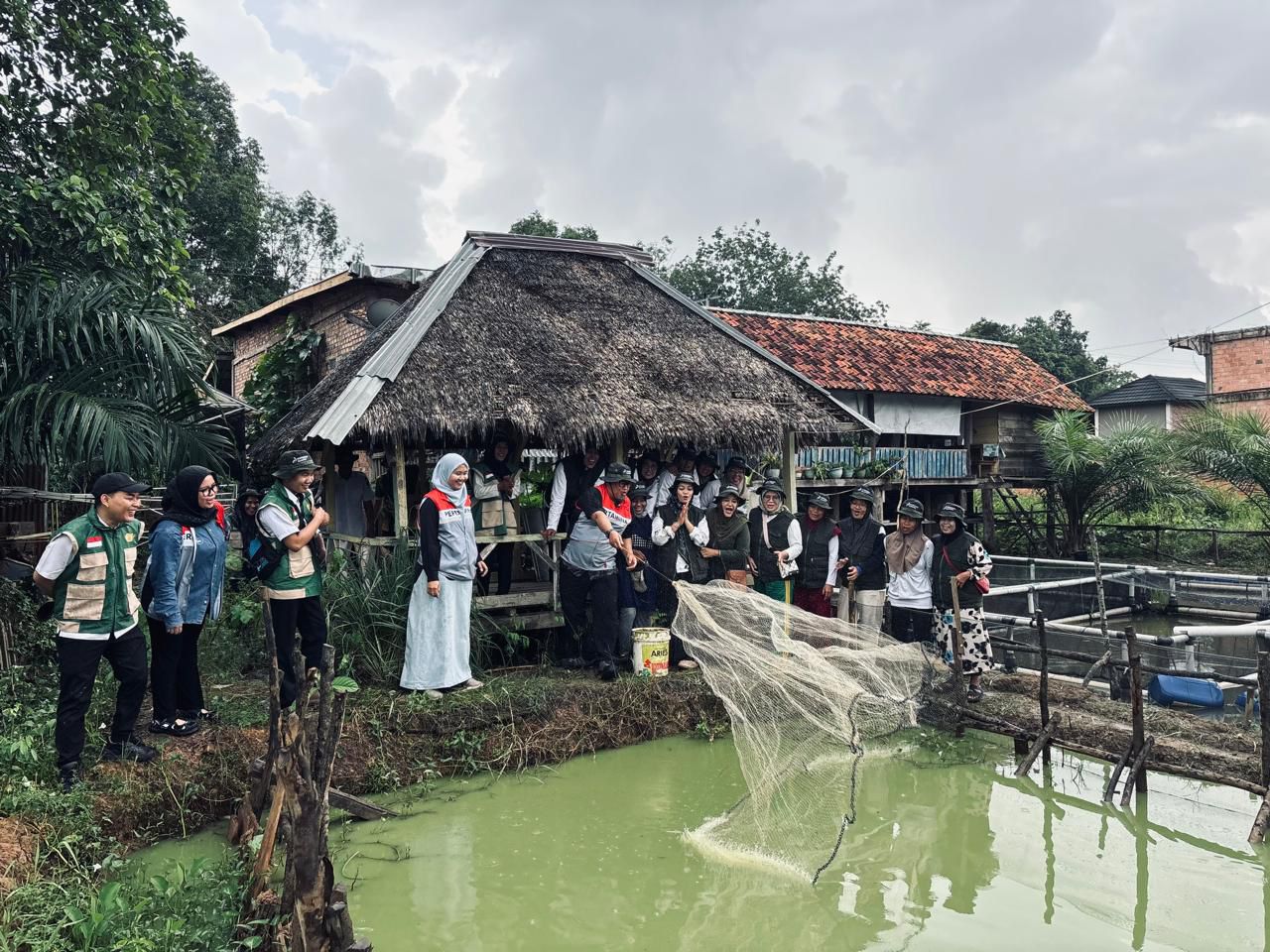 Ditemani rintik hujan yang menyejukkan, ibu-ibu Kelompok Wanita Tani (KWT) Pelangi siap memanen ikan dari keramba apung yang selama ini mereka rawat. Bersama warga lainnya, ibu-ibu KWT Pelangi menebar jaring, menyambut ikan-ikan yang sudah berlompatan sejak pagi.