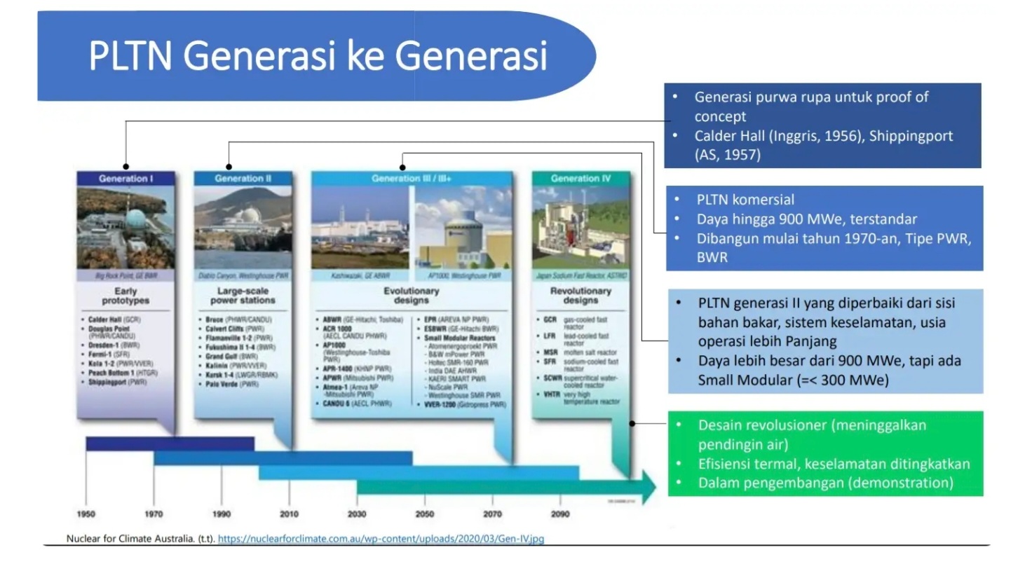 Ia mencontohkan peristiwa Fukushima Daiichi 2011 menjadi pembelajaran penting dalam penguatan sistem pendinginan, khususnya melalui pengembangan sistem keselamatan pasif yang mampu bekerja tanpa pasokan listrik eksternal untuk jangka panjang.
