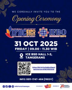 Asosiasi Franchise Indonesia bersama Neo Expo Promosindo selenggarakan Pameran Roadshow National Info Franchise & Business Concept (IFBC) & International Franchise & Business Opportunity (IFBO) 2025, 31 Oktober – 2 November 2025, di Panggung Acara Pameran IFBC & IFBO 2025